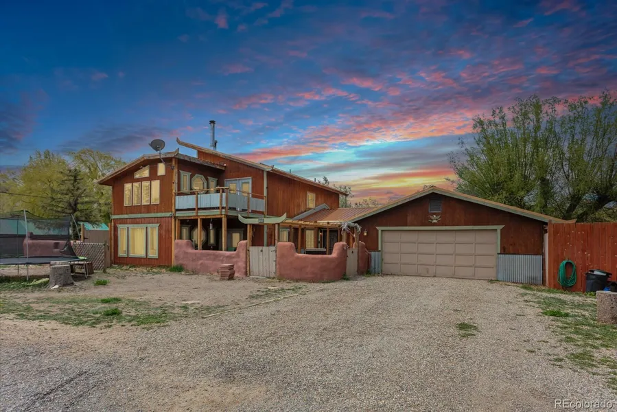 Big space on a private lot. This home is located in the Town of Saguache but on the outskirts offering peacefulness and views of the Sangre De Cristo mountain range. When you walk up to the front door, you will first notice the private courtyard with the adobe half wall. This is a perfect place for your plant collection to soak up sun or for your outdoor enjoyment. A mudroom is a landing spot from the 2 car attached garage or the front door for all of your shoes, coats, & gear. The bedrooms on this main level are close to the front door keeping the living space separate & perfect for gathering. There is a washer & dryer in one of the rooms downstairs with the ability to convert it into a bath. It would be a great primary suite or space for extra guests. The living room was designed to be rustic & comfortable. Wood plank floors, T&G ceiling, & beams frame the wood stove that will heat the entire house on a cold night. A sunroom off the living room is great for a craft or art studio. In the kitchen, the southwest theme continues adding personality without being overbearing. Two sinks & a commercial freezer are bonuses to meal prepping. Two doors lead to the big fenced in backyard. Upstairs has the primary bedroom with a sitting area & walk in closet & double doors to the balcony. There are two other bedrooms & a bonus room. The full bath is at the end of the hall with the functional & convenient upstairs washer & dryer. If you are looking for an income potential or perhaps a mother-in-law suite, there is another room downstairs with a private bathroom, exclusive water heater, & exterior door. This home is a perfectly located on a culdesac & is easily accessible to Alamosa, Salida, or Del Norte. The metal roof and public utilities make it an easy maintainer in all seasons. We are excited to schedule your private showing today!