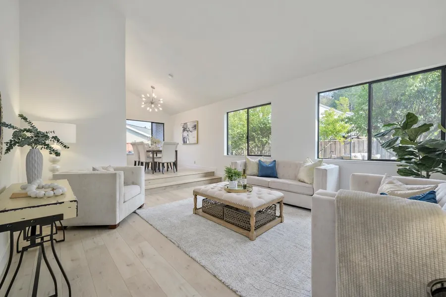 This is it! Welcome home to this stunning single-story retreat in the heart of Emerald Hills. Nestled in a peaceful neighborhood, this renovated home perfectly blends modern comfort and classic charm. Step inside and be greeted by a spacious, open living area flooded with natural light. The freshly painted walls and luxury laminate floors create a warm and inviting atmosphere. The open kitchen boasts stainless steel appliances and elegant countertops. The master bedroom is a true sanctuary, featuring an ensuite bathroom with a double vanity and a walk-in shower. Then, step outside to your private backyard paradise. The sparkling pool is surrounded by a spacious patio and mature fruit trees, making it ideal for outdoor entertaining and relaxation. Home includes a three-car garage with ample storage space and owned solar panels. Centrally located, you're just minutes away from top-rated Roy Cloud, parks, shopping, dining, and easy access to major tech employers. You can't miss it!