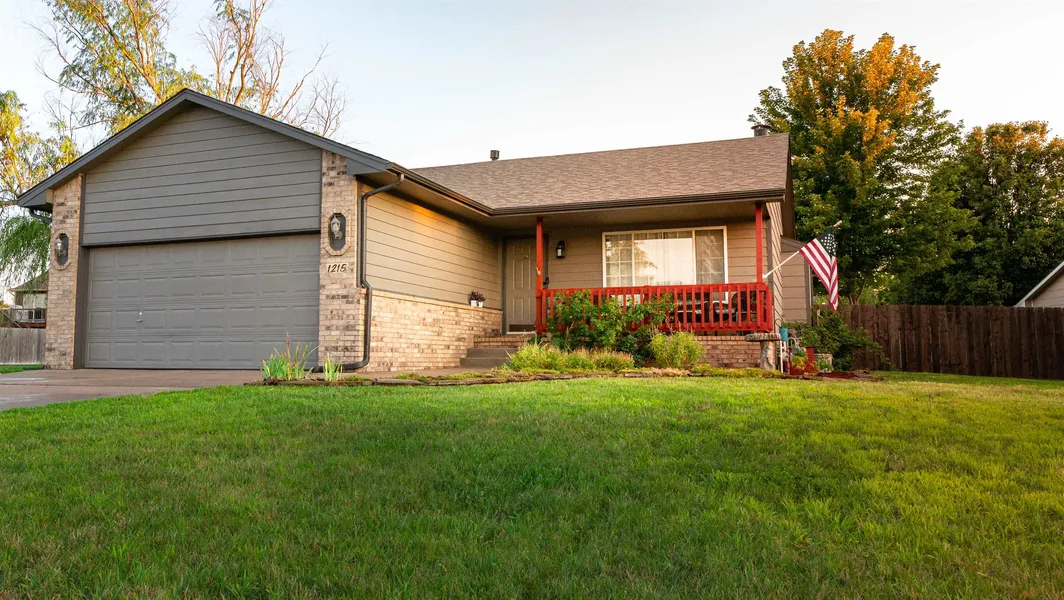 Goddard schools and no special taxes!! With a large corner lot, covered front porch, and tons of curb appeal, this is the home you've been waiting for! Walk through the front door and you'll be greeted with soothing tones, wood laminate floors, and high vaulted ceilings. The living room flows seamlessly into the spacious kitchen & dining area. Also on the main level are 2 bedrooms and 2 full bathrooms. As you head downstairs into the basement, a large rec room awaits, accompanied by a third bedroom and an additional full bathroom – a perfect haven for guests or versatile living space. Many big ticket items have been recently redone - the HVAC new in 2021, hot water heater Dec. 2018, roof & gutters replaced in 2017, fence 2017. This house is ready for you to move in and make your own! Schedule your showing today!