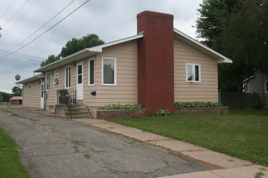 This is a neat ranch style 800 plus sq. ft. home with a kitchen that has built in cupboards, eat in dining area, LR w/carpet that has a nice touch with a brick fireplace.
