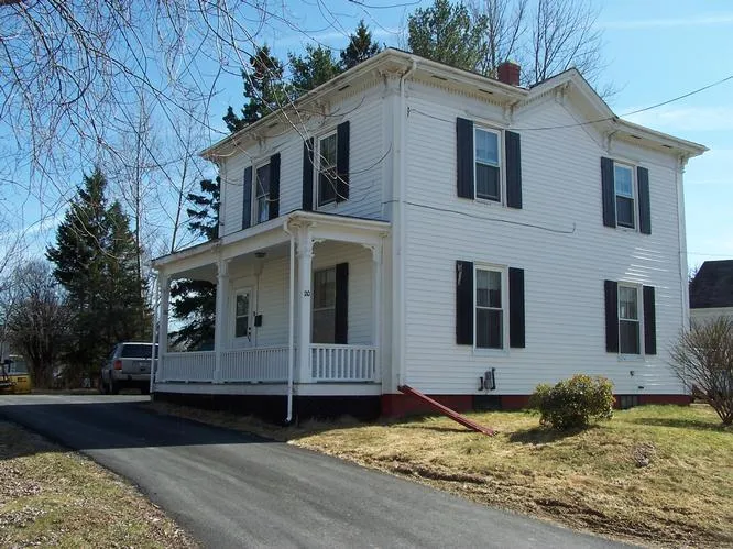 #1383) 20 Downes Street, Calais: Move right into this cozy 2BDR/1B downtown home with hardwood floors, gas fireplace, newer appliances, and porch. Many updates as well as paved driveway and new utility shed.