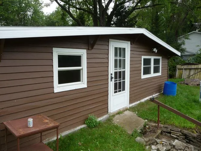 50 feet of frontage on Wolf River for "man cave" or fishing camp with a dock. Cabin is literally spittin' distance from the water. Take a step outside your door and cast your line. Property has electric toilet and wood burning stove which are included in price. Updates include roof, siding, and windows. Great place for a poker game if the fish aren't biting.