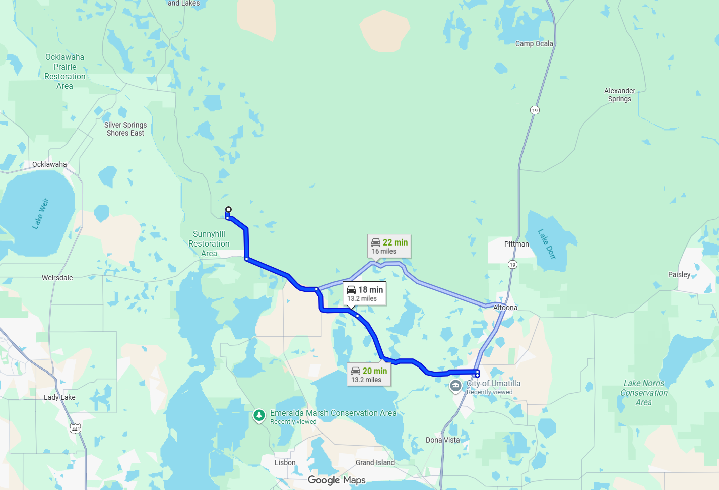 Quick drives to larger cities such as Eustis, Gainesville, and Orlando for shopping, dining, and entertainment.