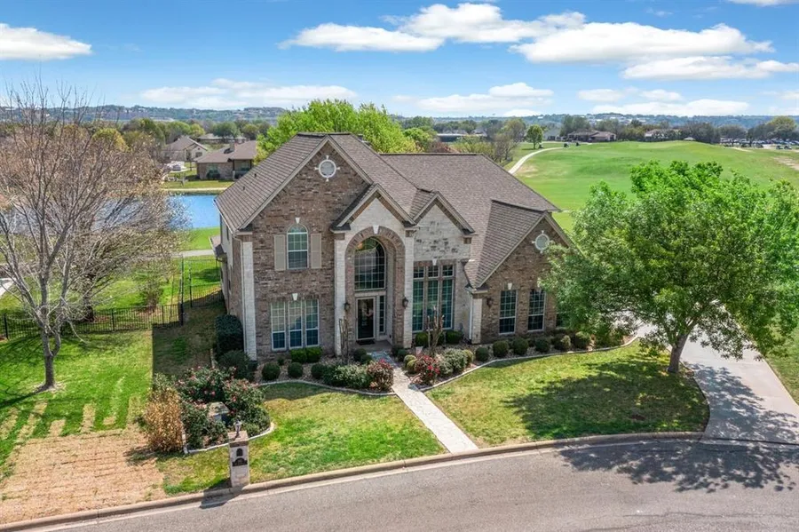 Welcome to this stunning 4 bedroom 4 1/2 bathroom home located in the charming community of Meadowlakes, Texas. This exquisite property boasts a spacious open floor plan, which allows plenty of natural light to filter through, creating a warm & inviting atmosphere throughout the home. As you step inside, you'll immediately notice the formal living & dining areas, which are perfect for entertaining guests or hosting elegant dinner parties. The media/game room offers a perfect space for movie nights gatherings. The study is the perfect place to work from home or to enjoy some quiet time. Additionally, the library nook is a great place to curl up with a good book and relax. The downstairs primary bedroom is a true oasis, offering a tranquil retreat with stunning golf course views. It's on-suite bathroom boasts a spa-like soaking tub & large walk-in shower, creating a luxurious experience that you'll love coming home to. Don't forget to check out the primary bedroom closet, it's huge and offers floor to ceiling shoe shelving. One of the best features of this home is its location, situated on the 18th fairway of the popular Hidden Falls Golf Course. You'll enjoy breathtaking views of the lush greenery and rolling hills that surround the area. And with the home backing onto a beautiful pond, you'll enjoy tranquil and serene views from your backyard. This gated community provides residents with access to a variety of amenities, including a community pool, golf, tennis, and pickleball courts. A must see!