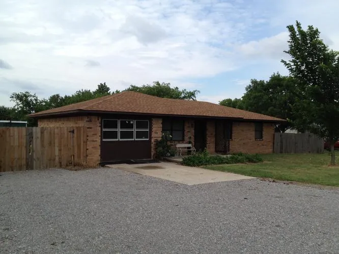 Brick home with converted garage that makes for a 3 bedroom, 2 bath home with lots of extras. There are two ovens in the kitchen (that will come in handy around Thanksgiving), an updated tile countertop and the refrigerator come with this home. The converted garage makes for a large bedroom with full bathroom and closet. There is a fenced back yard, storage buildings, 20 x 20 shop with concrete floor, carport, heat pump that is only 8 years old and a recently replaced roof.