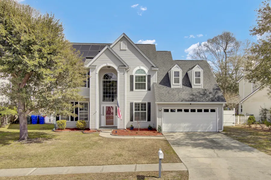 Welcome home to 3275 Hunters Rest Drive located in West Ashley's established, Village Green subdivision. This 4 bedroom home sits on a large lot with meticulously maintained landscaping overlooking a pond! Upon entering, you'll find a flex room that could be used as office or study with adjacent formal dining room. This connects to the large family room complete with a fireplace and plenty of windows to let natural light stream through. The eat-in kitchen features ample cabinet and counter space and a cozy breakfast nook that overlooks the backyard. The main floor provides access to an attached 2-car garage, laundry room, half bath, and screened in patio. Upstairs, your large Master bedroom is a true retreat with vaulted ceilings, 2 walk-in closets and a jacuzzi tub . The other two bedrooms are generously sized and share a full bath. A massive finished room over the garage could serve as the fourth bedroom, gym, office, or playroom. The living space of the home expands outside to a low maintenance white vinyl fenced-in back yard complete with a screened porch. This is the perfect space for entertaining, letting the children play, and pets roam! An additional concrete patio extends from screened in porch for summer grilling and entertaining. New HVAC replaced in Dec 2022 and water heater in March 2024, Solar panels are paid off and reduce your energy cost by 50%, and no flood insurance is required! Boaters! Double gated vinyl fence has a concrete slab poured that can accommodate a boat up to 27ft long. Neighborhood amenities include a park, walking trails, and a pool. Close proximity to schools, grocery stores, golf courses, beaches, Charleston airport, and downtown Charleston.