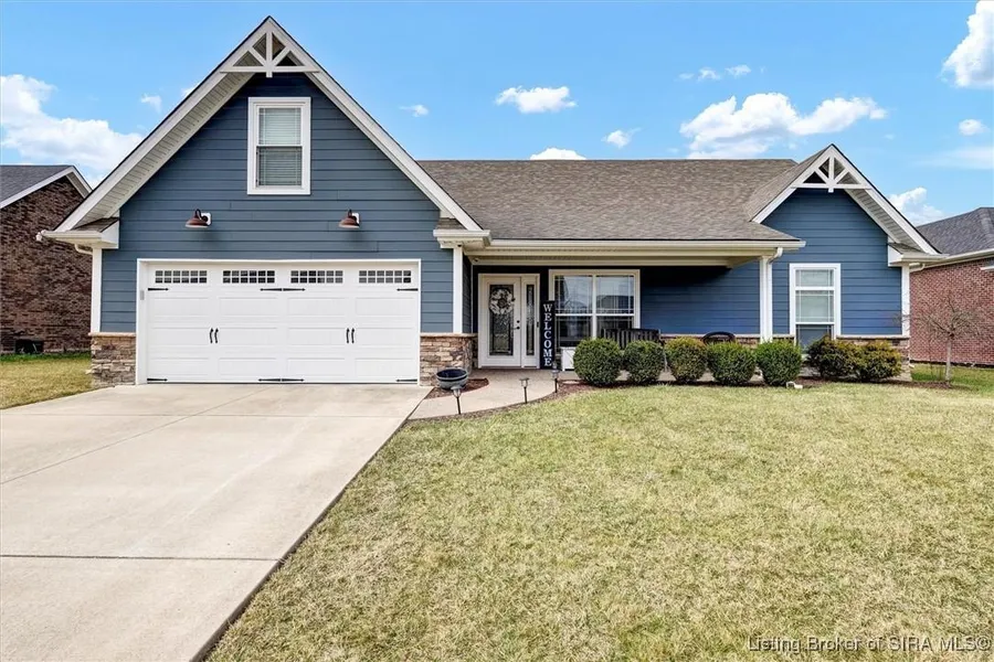 Welcome to this LIKE-NEW 4-bedroom, 3-bathroom home that effortlessly blends style, comfort, and functionality. You'll LOVE the open atmosphere with cathedral ceilings and engineered hardwood floors throughout. The spacious layout provides a natural flow from room to room, while the split-bedroom design ensures privacy for all. The heart of the home is the gourmet kitchen, from the stunning granite island to the sleek mosaic tile backsplash, it is perfect for meal prep or casual dining. From the kitchen, step out onto the covered back porch; an ideal spot to unwind while overlooking serene views of the backing farm, offering a sense of peace and privacy. The spacious primary suite boasts unique wood-like detail in the tray ceiling, a spacious en suite complete with TWO sinks, a walk-in closet and custom tiled shower! Upstairs, the bonus room provides versatile space, whether you need a 4th bedroom, playroom, or home office. You'll find the 3rd FULL bath up there as well. For added convenience, this home is part of a welcoming community with access to a clubhouse, fitness room, and swimming pool, making it easy to stay active and enjoy leisure time just steps from your door. Don't miss your chance to own this charming, well-appointed home in a peaceful setting with all the modern amenities you need. It is truly the perfect blend of comfort and convenience! JEFFERSONVILLE UTILITIES. Sq ft & rm sz approx.