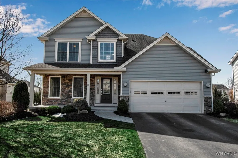 Welcome to 18 Jonquille Ct, a beautifully designed 2014-built Marrano model home in the sought-after Pleasant Meadows community. This home offers an inviting open-concept floor plan, featuring a spacious country kitchen with a center island, granite countertops, and hardwood flooring. The bright and airy family room is anchored by a cozy gas fireplace, creating the perfect space to relax. Upstairs, the large primary suite features a private bath and walk-in closet, while the second-floor laundry adds convenience. Additional highlights include Pella windows, Kohler plumbing fixtures, a full front porch, a grand two-story foyer, an 8-foot basement, a high-efficiency furnace, and central air. Enjoy peace of mind year-round with a full house generator, and keep your lawn looking its best with the front yard sprinkler system. Showings begin on Wednesday, 3/19 with offers due on Tuesday, 3/25 ...