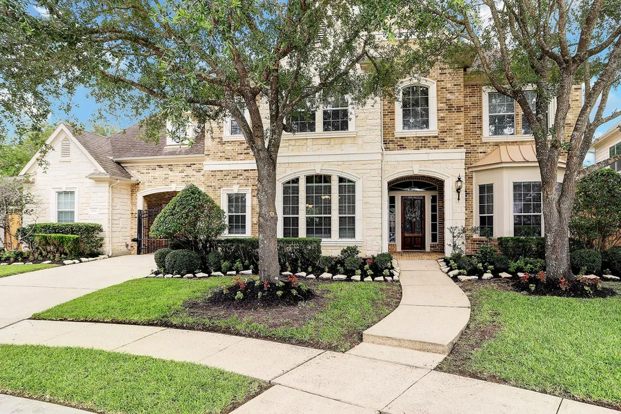 Enjoy the luxury of this executive-style home nestled between mature trees in cul-de-sac! Youll love the open floor plan with large flexible living spaces and wood floors. Work from home in a spacious study behind French doors, and work-out at home in the 250 sq ft home gym (converted single car garage - not included in the 4135 sq ft). A motor court behind automatic driveway gate allows private play, parking and pet area. The chefs style kitchen features professional grade cook top w griddle, hood vent and tumbled travertine backsplash. Simply relax in the primary retreat highlighted by deep jetted tub, large walk-in shower, travertine floors and surround, large built-in in the spacious closet. Upstairs features 4 bedrooms plus large game room, flex space/library/music room, and homework area. Outdoor firepit, built-in grill and covered patio make the backyard an ideal place to relax or entertain. Dont miss the huge storage space above the home gym. This one is a must see!