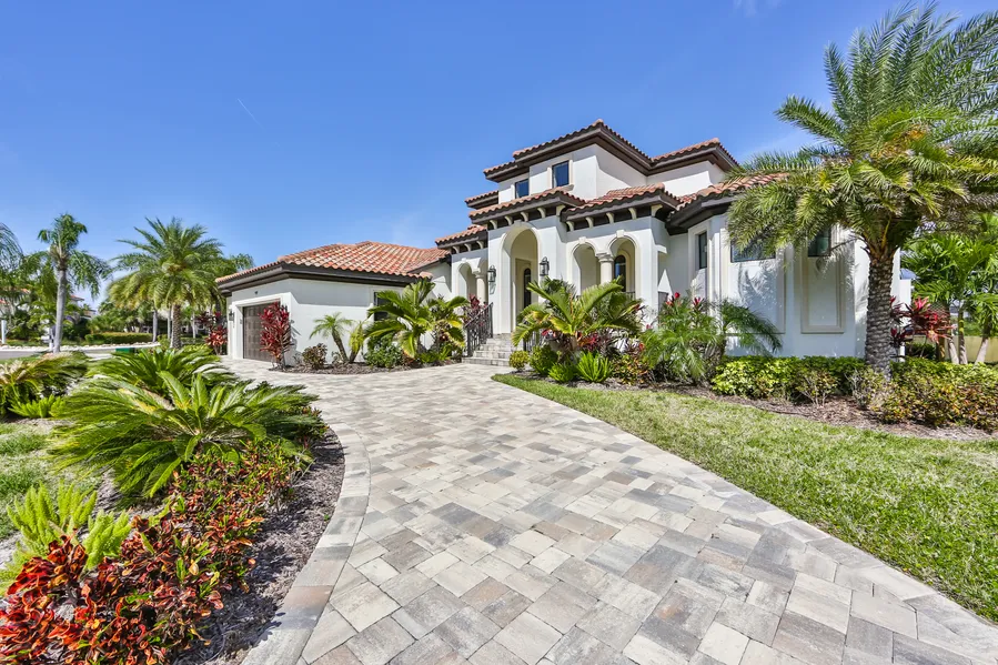 Your dream home awaits. This masterpiece is truly one of a kind w/ the most amazing extended canal views! Inspiring Spanish Mediterranean architecture w/ a grand paver circular driveway, lavish landscaping, and impressive curb appeal. Walk into the spectacular family room w/ over 22ft ceiling, exquisite porcelain tile floors, an open layout that's perfect for entertaining! State-of-the-art kitchen offering dual color custom cabinetry, elegant quartz countertops and backsplash, large island, luxurious stainless steel appliances including double wall oven, 6-burner gas cooktop, french door refrigerator w/ bottom drawer, stylish pendant and dining room lighting, recess lighting throughout, and more! The master suite downstairs features a sitting area, bay window w/ water views, huge walk-in closet, and spectacular master bath w/ dual sinks and vanity, stand alone tub, and gorgeous tiled car...