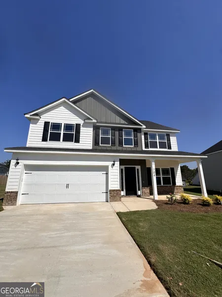 The Lansing 8, .26 acre lot, 4 bedrooms, 3 full baths. Plus a Family room/Gameroom with barn doors upstairs. Beautiful entry with lots of bells and whistles. Open and bright. Lovely kitchen design with lots of cabinets, island and tile backsplash. Coffered ceilings, rounded corners, covered porches, lvp flooring, 2 car garage and upgraded countertops. Large walk in closet, Spacious bedrooms, high ceilings and spare bedrooms upstairs. Big Backyard. County taxes only. DON'T MISS THIS ONE!!!
