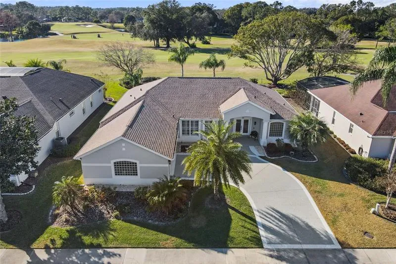Located in the premiere golf community of The Country Club of Mount Dora, this home offers a fabulous of the golf course and gorgeous sunsets. It has been beautifully updated with features such as: luxury vinyl plank flooring and 6” baseboards throughout the living areas and bedrooms, crown molding and custom millwork. The kitchen has 42” soft close white cabinetry, granite counters, an expanded kitchen isle, a decorative shiplap accent wall with custom LED color lights above the cabinets and an informal dining area. The family room features an electric fireplace, entertainment center and a Pella picture window. The family room and living room open to the large, screened lanai-all to further appreciate the panoramic view across two fairways of the golf course. There are three bedrooms, with the primary bedroom situated on the opposite side of the house for maximum privacy. The spacious primary bedroom features Levolor silhouette shades on the Pella picture window and sliding doors, plantation shutters, two walk in closets and an en suite bath with a separate shower and garden tub. Enjoy golf, pickleball, tennis, pool and member dinners and events with membership to The Country Club of Mount Dora. This beautiful home shows like a model and there are too many special features to list, so make your appointment to see it today!