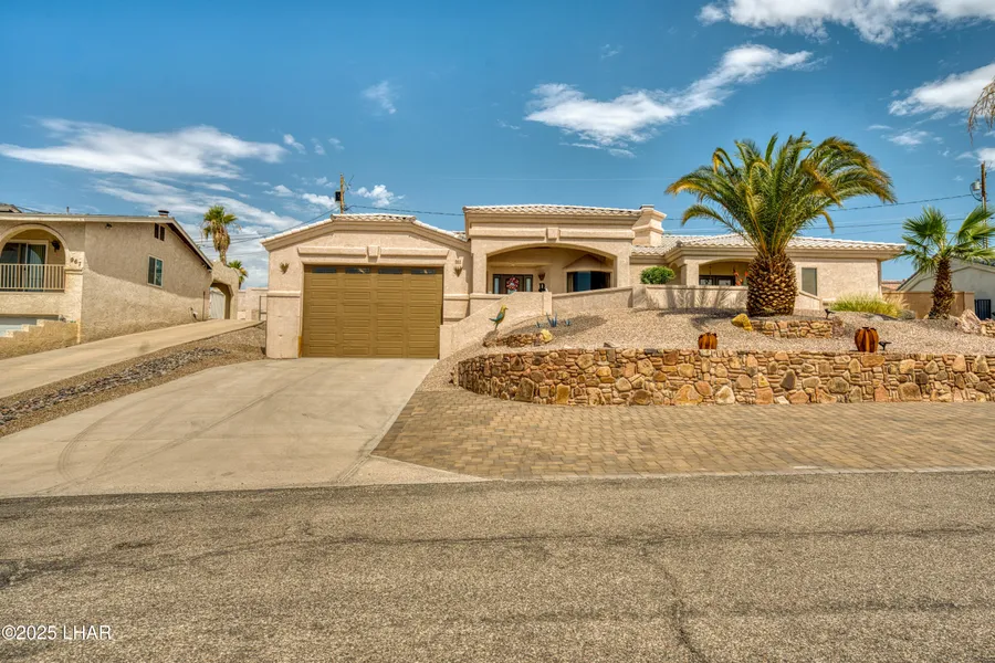 AMAZING PRICE ADJUSTMENT on this beautifully update and remodeled home with a heated pool with 3 water features, 3 bedrooms, 2 baths, and tropical backyard with artificial grass both back and front yards. There is also 220 amp in the RV garage for your electric vehicle. A beautiful Chef's kitchen with 2 pantries a prep island, exotic granite, seating bar, wet bar, and formal dining area. Open floor plan, large RV garage with indoor laundry, stainless steel appliances. The pool was built in 2018 with a conversation table, large baja shelf and travertine decking. New interior paint, large master bedroom with double walk in closet and double vanities, a fireplace jacuzzi tub and walk in shower. Second bedroom could be second master, guest bedroom has a finished loft for extra sleeping quarters. The garage has epoxy flooring with plenty of room for toys, boat, cars and has a cooling unit. Mature landscaping and the backyard has room for a casita. The pool even has custom tile artwork in the Gunite. Level front parking to the street.