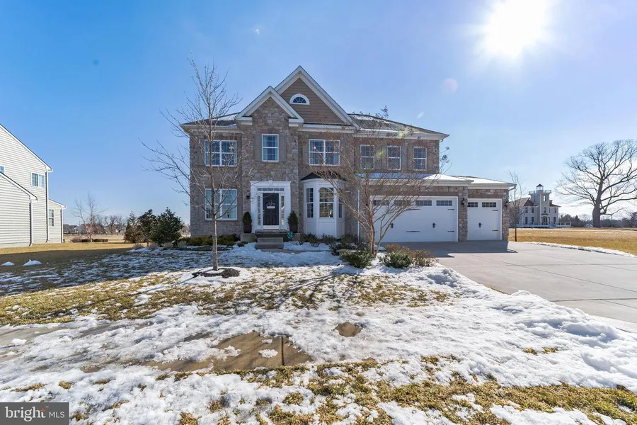 Showings begin Saturday 4/17. Don't miss this meticulously maintained home in the sought-after neighborhood of Ashby's Place! This community of only 54 homes is situated in the award-winning Appoquinimink School District. This lovely stone front home with a three-car garage and a walk-out finished basement impresses from the moment you pull into the driveway. Upon entering the large foyer, you are flanked by the large, open living room and dining room with wide plank hardwood floors that run throughout the main level. The foyer leads you into a grand two-story family room with a floor-to-ceiling stone fireplace. Located on one side of the family room is a large home office/den with lots of natural light. On the other side is your large eat-in kitchen with an island, stainless steel appliances and double wall ovens. The sliders lead to additional living space on the paver patio with garde...
