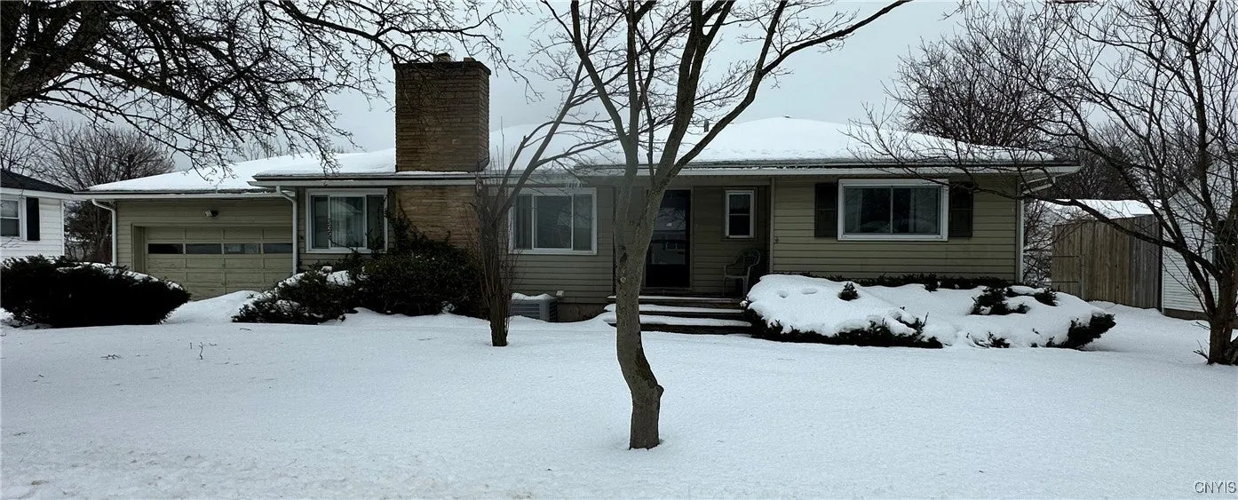 Ranch home located just on the line of the city of Oswego and just down the street from SUNY Oswego. Nice sized living room with lots of windows. Formal dining room for entertaining & gatherings. Den/study/office for your work from home needs. Fantastic kitchen with plenty of storage, stainless steel appliances and eating area with bay window to over look all the fun in your in-ground pool in the back yard. Full bath and half bath upstairs both with ceramic tile flooring. Good sized primary bedroom with 2 closets. Two other bedrooms round out the first floor. Partially finished basement with half bath. Attached 2 car garage.