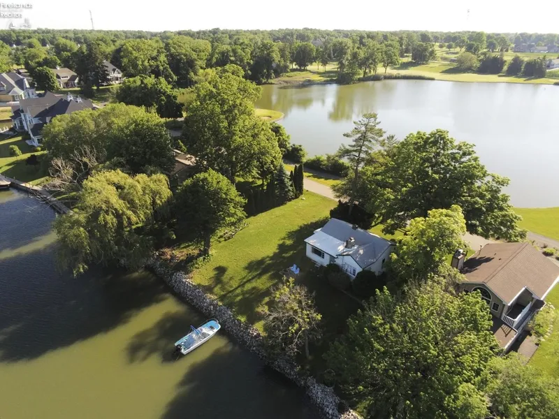 Premier Location! Waterfront double lot over half acre walking distance or golf cart ride to the Catawba Island Club. Located at the Sanctuary overlooking Speakers Pond and marina area with direct lake access and views. Build a dock right at your door! This property is offered either as a large waterfront Lot for building your own Lake Erie home or, keep the small fisherman's cottage with wood burning fireplace on it for guest quarters and build a home on the other lot - many options! The Sanctuary is a very desired Catawba Island area. Along with the CIC location you can also enjoy all the Lake Erie amenities of Fishing, Boating, Breweries, Historic Winery, Ferry to the Islands and so much more. With Catawba Island membership enjoy 18 hole Arthur Hill designed golf course, lakefront swimming pool, Fine and casual dining and more. (Room sizes approximate).