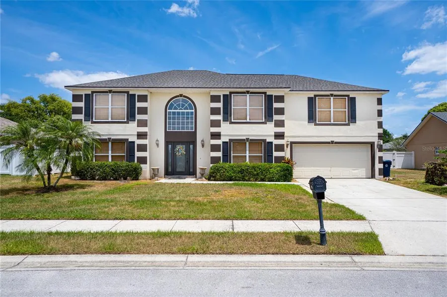 Don't miss this amazing opportunity to own a spacious 5-bedroom, 2.5-bath home with 2,916 square feet in the well-established, gated community of Shaddock Estates. Step inside to find a formal living room that leads seamlessly into the heart of the home-the beautifully updated kitchen. Featuring granite countertops, stainless steel appliances, a center island, a closet pantry, and ample cabinet and counter space, this kitchen is both functional and stylish. A cozy dinette area with sliding glass doors opens to a spacious backyard, ideal for outdoor gatherings. Just off the kitchen is a formal dining room highlighted by an elegant chandelier-perfect for entertaining. One bedroom and a half bath are conveniently located on the first floor, offering flexible options for guests or a home office. Upstairs, you'll find a generous loft space-perfect for a second living room, kids' play area, home office, or gym. The primary suite is a true retreat, featuring vaulted ceilings, a walk-in closet, and an updated en-suite bathroom with a soaking tub, separate shower, and modern vanity. The remaining bedrooms share a well-appointed hall bath. Recent upgrades include a new roof (2024) and two new A/C units (2023), offering peace of mind and energy efficiency. Ideally situated with easy access to major highways, shopping centers, schools, parks, and public transportation. Plus, you're just a 45-minute drive to Florida's world-famous theme parks and close to Tampa for even more entertainment and cultural options.
