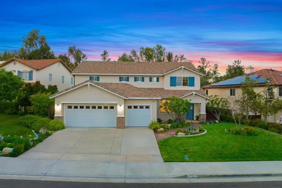 trees are highlighted with ambient lighting to create a magical atmosphere. The end to end alumiwood patio cover provides shade and shelter, making it perfect for outdoor entertainment. The backyard features stunning quartzite natural stone hardscaping and a beautiful pebble tech saltwater pool and spa, perfect for cooling off during hot summer days. Step inside to a spacious and modern interior with a large kitchen boasting quartz counters, Kitchenaid appliances, custom tile backsplash, and under cabinet lighting. All three bathrooms have been remodeled with quartz countertops, custom tile work, and modern finishes, providing a luxurious experience for you a...