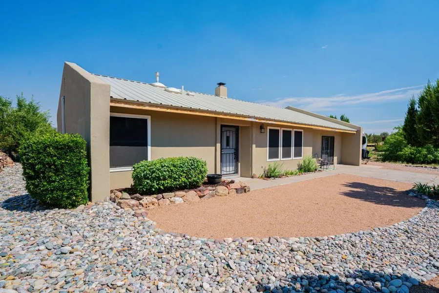 Welcome to this beautifully updated gem of a home in peaceful Cochiti Lake, NM! This three bedroom, two bath, about 1600 square foot home resides on a large, corner .26 acre lot. The many upgrades to this home include a new roof with a transferable warranty, new stucco, a new Lennox furnace and A/C, new laminate flooring (with extra available), new fridge and gas stove, new farm doors, fresh paint and the list goes one. The garage has been converted into an amazing large and light- filled studio space that can be used as an art studio, den, or office with beautiful French doors for easy access. Enjoy the local fishing hot spot of Cochiti Lake and one of New Mexico's top golfing destinations: the Pueblo de Cochiti Golf Course. This home is ready to go and is located near Santa Fe or an easy drive to Albuquerque. Schedule your showing today.