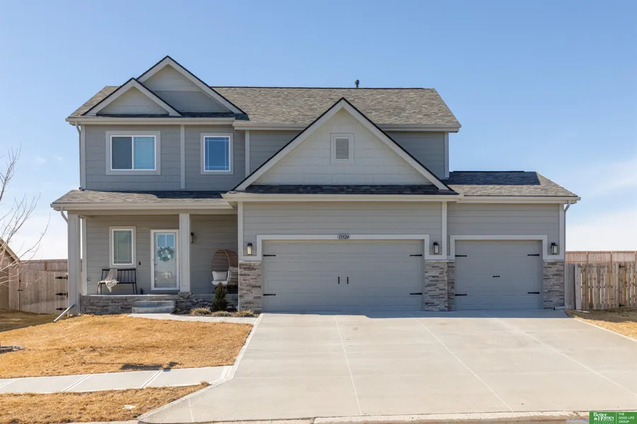 PRE-INSPECTED! Only 3 years young, this Papillion 2-story home has been loved and upgraded with beautiful finishes throughout plus no direct rear neighbors! Main level features tons of natural light, an electric fireplace with stone surround and custom floating shelves on either side, stylish light fixtures and ceiling fans throughout, and custom accent molding in entryway and main floor bathroom. Spacious kitchen features walk-in pantry, tiled hexagon backsplash, quartz countertops, and a massive island big enough for 4-5 stools. Unique built-in desk/office space hidden around the corner too! All 4 bedrooms together upstairs with an large walk-in primary closet of your dreams. Over 1/4 acre lot with full privacy fence and oversized 3 car garage. Unfinished basement offers egress window and bathroom rough-in, ready for your future finishes for even more room to spread out, or simply enjo...