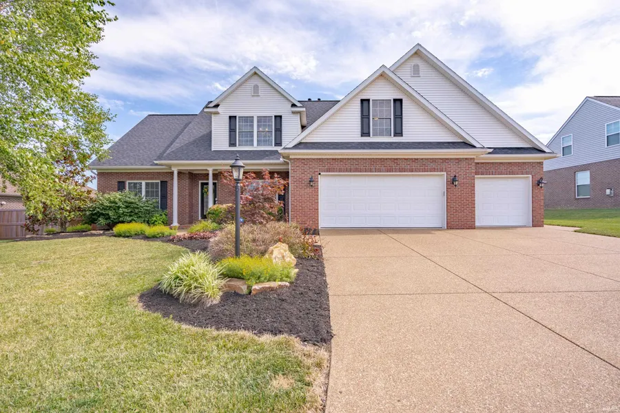 Welcome to this well-maintained custom-built home, offering 4 bedrooms and a bonus room that can function as a 5th bedroom, along with 3.5 baths. Situated on a large lot, the property has a privacy-fenced backyard featuring a 16x32 inground pool, covered patio area, and ample space for outdoor activities. Inside, you'll discover an inviting open floor plan. The foyer leads to a spacious dining room with French doors and hardwood flooring, perfect for use as a home office if desired. The two-story great room impresses with a wall of windows, hardwood flooring, and a fireplace that seamlessly connects to the breakfast nook and kitchen. The kitchen is fully equipped with custom cabinets, stainless steel appliances, a pantry, a built-in hutch in the nook area, a breakfast bar, and a planning desk. It also provides easy access to the outdoor entertaining area. On the main level, you'll find the owner's suite, complete with a large bathroom with a tub, separate shower, double sink vanity, and a sizable walk-in closet. Upstairs, there are 3 more bedrooms, 2 full baths, and a versatile bonus room that can be converted into a fifth bedroom if needed. Additional convenience is offered with the guest bath and laundry area, featuring a sink and cabinetry, located off the oversized 3-car garage. Storage is not an issue, with several closets throughout, including walk-in closets in the bedrooms, and a walk-in attic space. The property's prime location ensures easy access to shopping centers, the interstate, airport, and nearby schools. The extensive backyard, with its inviting pool and outdoor space, adds to the appeal of this immaculate home.