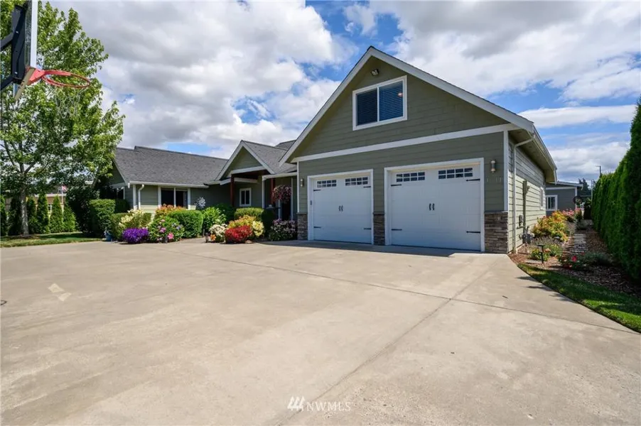 Must see to appreciate this beautifully maintained custom home. 3 oversized bedrooms on the main floor plus a big bonus room with a full bathroom. Home sits back off the road and has a long paved driveway, 758 sqft, 3 car garage, mature landscaping throughout. Great room with gas fireplace and French doors out to a large covered patio and lovely backyard. High quality backyard shed that could make a wonderful home office.
