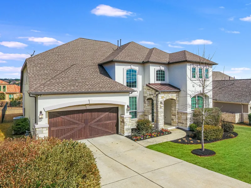 Located in a quiet cul-de-sac, this one-of-a-kind Toll Brothers home offers a versatile floor plan in the award-winning community of Travisso. Upon entering the home, you immediately notice its distinctive features. You are welcomed into the home by a two-story foyer with a dramatically trimmed formal. The gourmet chefs kitchen includes gas range, double oven, exotic granite counters and an over-sized island that opens to the living area and allows for easy entertaining. Continue the party onto the extended outdoor patio and the outdoor kitchen. The main level study boasts custom built-ins and offers a private place to work from home. The spacious primary retreat boast a high, open, beamed ceiling while its bathroom includes double vanities, oversized shower, freestanding tub, & two large walk-in closets. A nicely appointed guest room with ensuite bath and step-in shower completes the main floor. Two additional bedrooms joined by a jack and jill bath are located upstairs along with an expanded game room and a media room. It makes the perfect place to entertain or create a private kids' getaway.