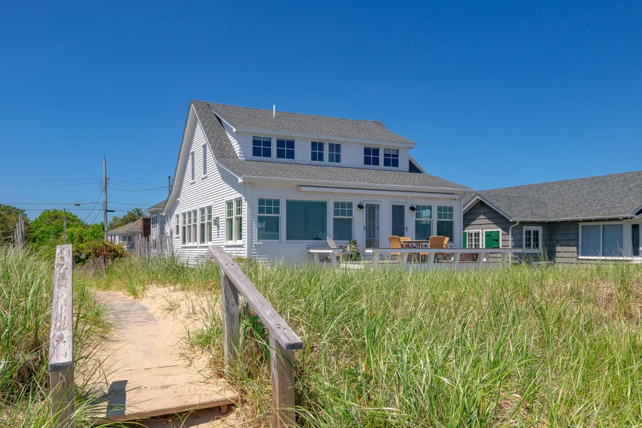Welcome to your dream sun filled beachfront getaway with stunning views from the activity of OOB to the serenity of Biddeford Pool. This stunning, 2012 fully renovated cottage on Ferry Beach is the epitome of coastal charm. Nestled in a walkable neighborhood, it is ideally located just off the beach. You will see, smell and hear the waves from the comfort of your own cottage. The open concept main level showcases a gorgeous kitchen, living, and dining area allowing every space to take in the dramatic sunshine and unobstructed view. The spacious deck provides plenty of space for alfresco dinners, marshmallows over the firepit all at the beach's edge. If the sun becomes too much, the electric awning provides relaxing shade and comfort throughout the day. The 1st floor primary suite also offers dramatic views and direct access to the deck. The second floor retains the classic Maine beach co...
