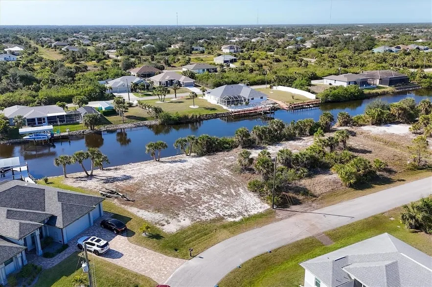 Under contract-accepting backup offers. ** MAJOR PRICE IMPROVEMENT** Spectacular OVERSIZE waterfront key lot in the boating community of South Gulf Cove! This lot is cleared and ready to build on. 115 feet of waterfront with the riprap already in. Buy now for your forever home or hold it for investment. Beautiful area with many newer homes on the street. Stunning sunsets!! Situated at the wide part of the canal for even more privacy. They are not creating any more lots like this. South Gulf Cove affords you a perfect location for golf, several courses are within 15 minutes, resturuants, and shopping. Community center and numerous parks as well as a community boat ramp. Don't let this one pass you bye If you are in need of a builder we have several to choose from that specialize in custom homes tailored to your needs! LOOKING FOR AN ESTATE SIZE PROPERTY AND SPECTACULAR HOME? The home on the adjoing tip lot is now available MLS #D6141219