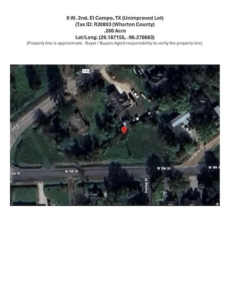 Seize this incredible opportunity to own unimproved land in the charming town of El Campo, TX! This .260-acre lot offers endless potential with no HOA, giving you the freedom to build your dream home or invest for the future. Whether you re looking for a quiet retreat, a residential property, or a long-term investment, this lot provides the perfect canvas to bring your vision to life. Located in a peaceful yet convenient area, this property offers small-town charm with easy access to major highways, shopping, dining, and top-rated schools. Enjoy the benefits of Texas landownership with the flexibility to develop on your terms. Don t miss this rare chance to secure a prime piece of real estate in fast-growing El Campo