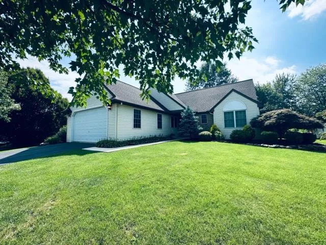 Well cared for Ranch with open floor plan in a small quiet country development. Beautiful farmland views to the rear. Finished 3 season room with two sliding doors to patios. First floor laundry, living room with fireplace, master bedroom with master bath. Hugh basement for you to finish for entertaining or family/rec room with outside basement entrance. Gas heat with Central Air. Recent Newer Roof, Heating and Cooling system and Hot Water heater.
