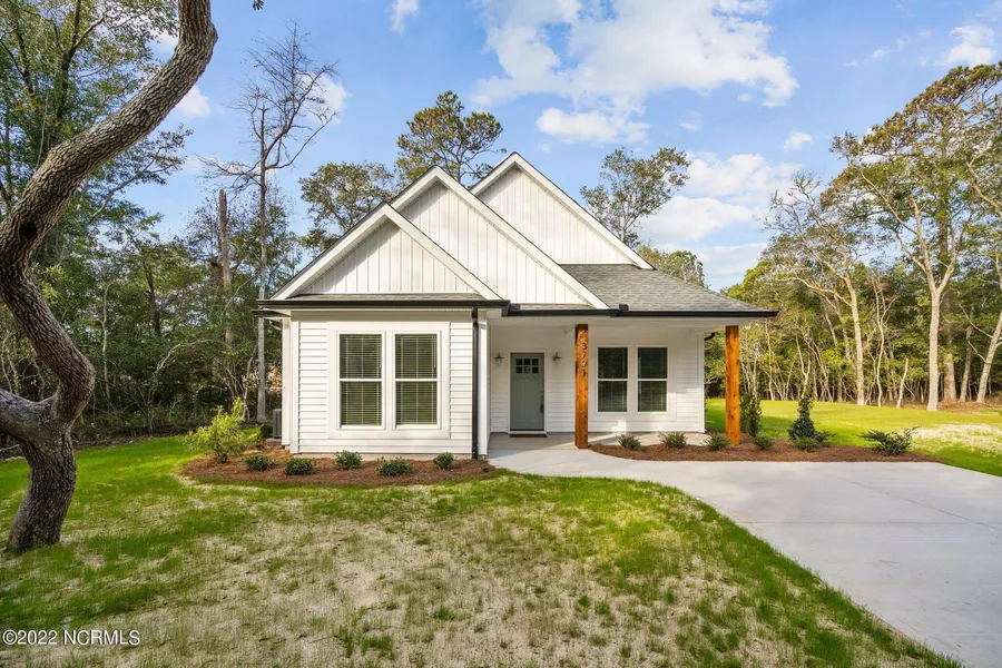 Now ready for you to come home. This is a beautiful home in a peaceful setting, surrounded by live oak trees. If you are looking for 3 bedrooms, 2 baths and a large yard with NO HOA. this is the home you need to see. Located on a quiet county road minutes from a public boat ramp, the home abounds with upgrades. From the moment you enter the door you are greeted with a large open area. Looking up, the entertaining area is enhanced by a vaulted ceiling, the elegant simplicity continues with easy to maintain LVP flooring that flows throughout the house. The eye pleasing centerpiece of the living area is a gorgeous electric fireplace with shiplap surround and a barnwood mantle. The kitchen features upgraded granite counters, Delta and Kohler plumbing fixtures, Whirlpool appliances, and all wood cabinets with soft close drawers and cabinet doors. All lighting fixtures are upgraded with modern aesthetics. The primary bedroom is easily accessed from a short hall off the main living area. Entering you will find another vaulted ceiling, great natural light, and abundant storage in the closets. The en suite bathroom is a tiled paradise with an oversized walk in shower and separate toilet room. Two additional bedrooms share a bath off the second hallway. Even the closets share in the enhanced touches as every closet in the home offers upgraded wood shelving. The windows feature 2'' Levelor faux wood blinds to create privacy as desired. These experienced local builders have overseen every process of the build and provided quality in all areas, including upgrading the HVAC unit with TRANE products. Your new home is waiting for you mere blocks from the boat ramp and beautiful waterfront area of Sunset Harbor. Schedule to see it today!