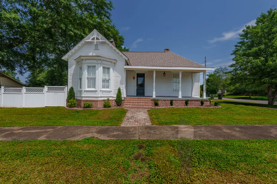 Welcome to the beautiful Walnut Cottage! A beautiful blend of historic charm with modern luxury. Built in the late 1800s and fully remodeled, this stunning home sits on a corner lot with new landscaping and brick accents. Inside, you'll find soaring 12-ft ceilings, hardwoods throughout, quartz countertops, a gas stove, new stainless appliances, updated lighting, and four fireplaces (two stubbed for gas). Major upgrades include a new roof, HVAC, tankless gas water heater, and updated plumbing and electrical. The front porch features a beautiful tongue-and-groove wood ceiling. A separate 400 sq ft remodeled studio apartment with separate entrance includes a full bath, kitchenette, and a new mini split unit perfect for guests or rental income. A 40 X 30 detached garage completes this one-of-a-kind property. Call today to see it before it's gone!