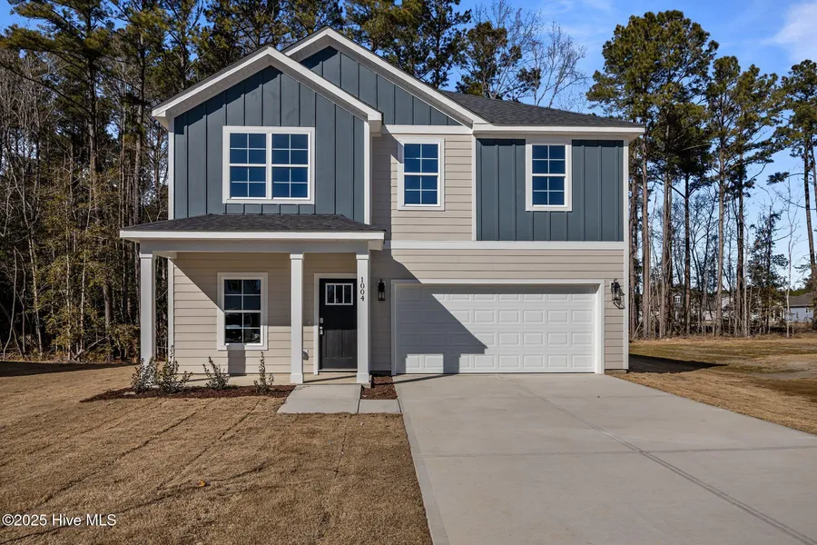 Up to $7,000 Use-As-You-Choose Credit PLUS One Year of Paid HOA Dues! Gorgeous new construction home on a .27-acre cul-de-sac lot offering 4 bedrooms, 2.5 baths, and a versatile two-story layout. An inviting foyer opens to a spacious great room, ideal for entertaining, along with a flexible room to suit your lifestyle. The modern kitchen features an island, shaker-style cabinets, and stainless steel GE appliances. Flooring includes a stylish mix of LVP/LVT with carpet in the bedrooms for comfort. Upstairs, a convenient laundry room makes daily routines simple. Covered front and rear patios provide perfect spots to relax or gather, while the front-entry garage offers easy access and extra storage. Located just minutes from Historic Downtown New Bern, 12 miles from Cherry Point Marine Corps Air Station, and 45 minutes from Atlantic Beach. Community amenities include tennis courts, pickleball, pool, pavilion, and dining at the Sports Bar & Cafperfect for connecting with friends and neighbors. High-speed fiber internet and cable TV are included through the HOA for only $66/month. Don't miss your chance to own this beautiful, move-in ready home!