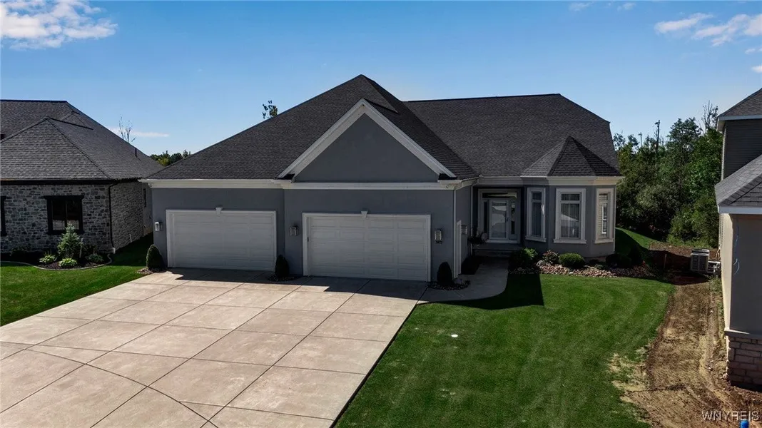 Prepare to be amazed by this spectacular 2-story 3 bdrm, 2.5 bath custom Patio home located on a quiet cul-de-sac in sought after Spaulding Green offering over 4000 sq ft of luxurious living space. This modern gem boasts a spacious open floor plan designed for entertaining & family gatherings. Welcoming 2-story foyer leads to GR w/wall of windows, gas frplc, wet bar w/wine frig & opens to the covered patio overlooking private yard. The state-of-the-art kitchen, featuring high-end appls, 2-DW's, Quartz countertops, w-i pantry & a massive island perfect for gatherings. Din & Lvg rm features a step ceiling & custom lighting. Lovely first flr owner’s ensuite w/trayed ceiling, custom lighting, 2 w-i closets & spa-like bath w/sep vanities & oversized shower. 2nd flr feature 2 add'l spacious bdrms, full bath & loft space perfect for an office. Beautifully landscaped yard and covered patio invites you to dine or simply unwind in style. Generator, tankless HWT, alarm & irrigation sys, Pella windows, recessed lighting, beautiful natural light & an abundance of closet space thruout. Condo status. Minutes from top-rated Clarence schools, shopping & dining. Also listed as SFR, MLS B1565320