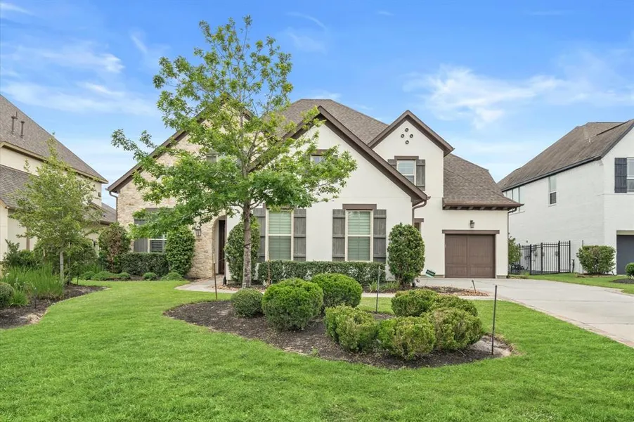 One of a kind built by Darling Homes, this beautiful property sits on a premium 11,902 sqFt lot with no neighbors on the back. Each of the 5 bedrooms has its own full bathroom, 3 bedrooms downstairs, upstairs are 2 extra bedrooms, fully equipped media room and game room. As you walk in you will find the office and the formal dining room, the living room with high ceilings and fireplace opens to the kitchen with tall custom made cabinets. The guest suite downstairs with private bathroom has its own entry from the front of the house. The laundry room is convenienty located next to the kitchen hallway and has access to primary closet. Luxurious covered patio with fireplace, large enough for a large table and living room set, plenty of seating space for large group gatherings; outdoor kitchen with granite counters, sink and fridge. Pool and jazcuzzi were built in 2018. Three car garage space...