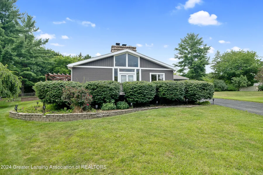Welcome home to 6302 Larocque Circle!!! This beautiful home inspired by Frank Llyod Wright California split can be found in the Delta Mills Subdivision of Lansing. A large vaulted great room with hardwood floors and oversized fireplace greets you upon entering this stunning home. The master suite, overlooking the living room, featuring French doors and quartz counter tops. This home has an amazing spacious laundry room, deck overlooking spacious backyard that is fenced. A completely finished basement adds over 1000 square feet of additional living space. This is a one-of-a-kind property that won't last long. Plus, there's an extra bedroom in the lower level, ideal for storage, an office, or a creative space. Don't miss the chance to make this stunning house your new home!