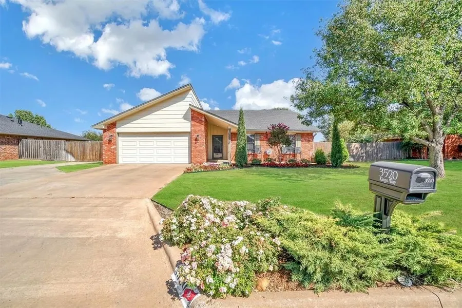 Come see what this 3-bedroom, 2-bathroom home has to offer! The first thing you'll notice is the amazing curb appeal with beautiful landscaping, additional parking space, a spacious front porch & mature trees. Inside, you’ll find a large, open great room with a fireplace, high ceilings and fresh paint that makes the space feel extra big and bright. The dining area has a custom built bar that’s perfect for entertaining. The kitchen has two-tone cabinets, durable white counters, new lighting, tile backsplash and stainless appliances. The master bedroom is a relaxing space with a stylish shiplap wall and a barn door that opens to the master bathroom, which features double sinks, a walk-in tile shower & large closet. The master bedroom also has a sliding glass door that steps out into the beautifully landscaped backyard with a covered patio for shade and extended open pavestone patio with a fire pit. There is a sprinkler system and there’s even a storage shed for your tools and extra belongings. Back inside, there are two additional bedrooms and a newly renovated full bathroom. There is also an indoor laundry room with storage & hanging rack. This home has lots of new updates & upgrades, including new flooring (no carpet!) and paint, doors and hardware, soft closing kitchen cabinets, new lighting & switches throughout, Nest thermostat, storm shelter, wiring for generator & so much more! This home is ready for you to move in and enjoy!