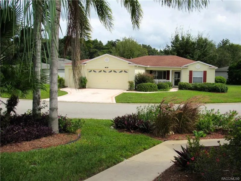 Calling all golf lovers! This community has it all! Golf, tennis, their very own beauty salon and post office. RV storage at a low monthly rate. Golf without the social membership is only $11. HOA fee includes cable and trash pickup, optional lawn & hedge trimming, and access to the community pool. This is a vibrant gated community with a plethora of things to do! The home, built in 2004, features 3 bedrooms in a split open floor plan, 2 bathrooms, and a 2 car garage, including a separate golf cart bay. The golf cart is also available for purchase. The kitchen has stainless steel appliances, a new garbage disposal, new fixtures and a pantry. It also features an eat-at counter. Laminate flooring throughout the living areas, carpet in the bedrooms and ceramic tile in the bathrooms. There are even 3 linen closets. Laundry in living area. The home has a water softener, a new sprinkler system and vinyl siding.