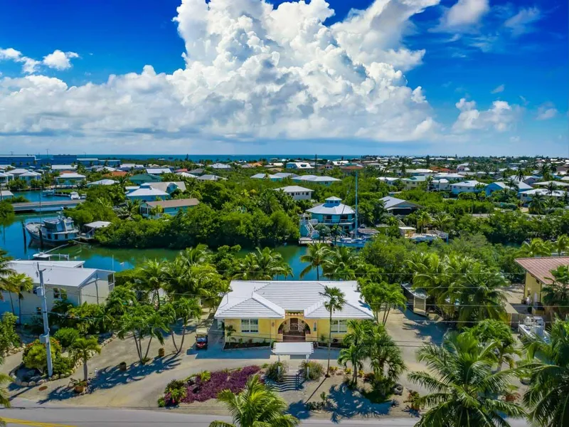 Rare opportunity to own in the Sombrero Golf Course Community! Located on a wide, deep-water canal, this single level concrete home features over 1,700 sq. ft. with 2 Bedrooms 2 Baths plus a bonus sitting room/den. As you walk through the front door, you'll be captivated by the view from the sliding glass doors leading onto a sprawling deck overlooking the crystal-clear canal. Dream chef's kitchen with custom cabinetry and tile, granite countertops, professional gas range & oven, all stainless appliances, pantry, and an enormous island with wonderful storage and seating. Bright and airy sitting room, perfect for lounging and appreciating the view. Split bedroom floorplan with a spacious en-suite master and roomy guest bedroom. Soaring 9 ft. ceilings throughout. Surrounded by lush tropical landscape on a sprawling 11,625 sq. ft. lot with 115 ft. of water frontage. Plenty of room for a pool as well as RV and trailer parking. Fantastic storage with a separate detached storage shed and attached garden shed. Extremely private lot in a quiet neighborhood located directly across the street from the Golf Course. Perfect location with convenient access to Publix, nearby shopping, and the beach by golf cart or bicycle via side streets while avoiding the traffic on Overseas Hwy. Boaters will appreciate the 60' seawall with plenty of depth for a deep draft boat and ample turn around space. A scenic ride out to Sister's Creek will lead you into the turquoise Atlantic waters for world class fishing and diving.