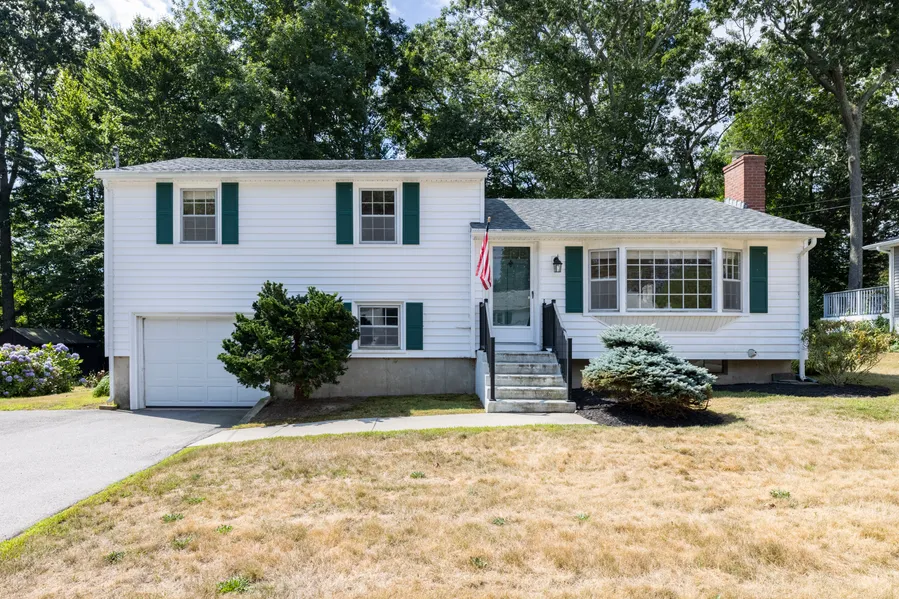 PRICED TO SELL!!! Located in a quiet Mystic neighborhood, this pretty home has been been owned and cared for by the same family for more than 40 years. There are hardwood floors throughout the main and upper levels. The main floor Living Room features lovely bay windows to let the sunshine in and a wood burning fireplace. The Dining Room offers ample views of the rear yard with sliding doors leading to a deck overlooking lovely trees and plantings. A spacious Sunroom features a vaulted ceiling with beautiful wood beams ,sliding doors to the deck, bay windows and a skylight. A half bath completes the main level. There are 3 Bedrooms and a full bath on the upper level. The lower level offers plenty of space for an Office or Rec Room and has engineered wood floors and built-in bookshelves. Laundry is also on the lower level and the entrance to the 1 car garage. There is Central Air on the main and lower levels. Easy exterior care with Leaf Guard on gutters and vinyl siding. With some TLC this home will shine!