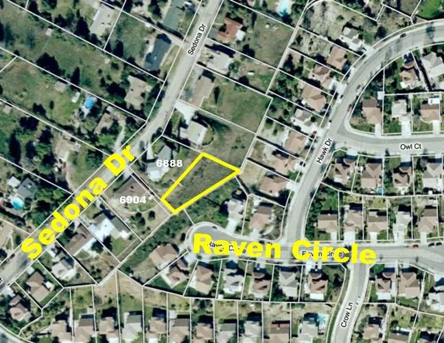 Driving Directions: From Hwy 60, take exit 48 Valley Way toward Mission Blvd. Turn south on Valley Way and left on Mission Blvd. Turn right on Jurupa Rd. Turn left on Jewel St. Turn right on Sedona Dr. Turn left between the houses at 6888 and 6904 Sedona and take the driveway to the parcel for sale which is behind the house at 6888 Sedona.