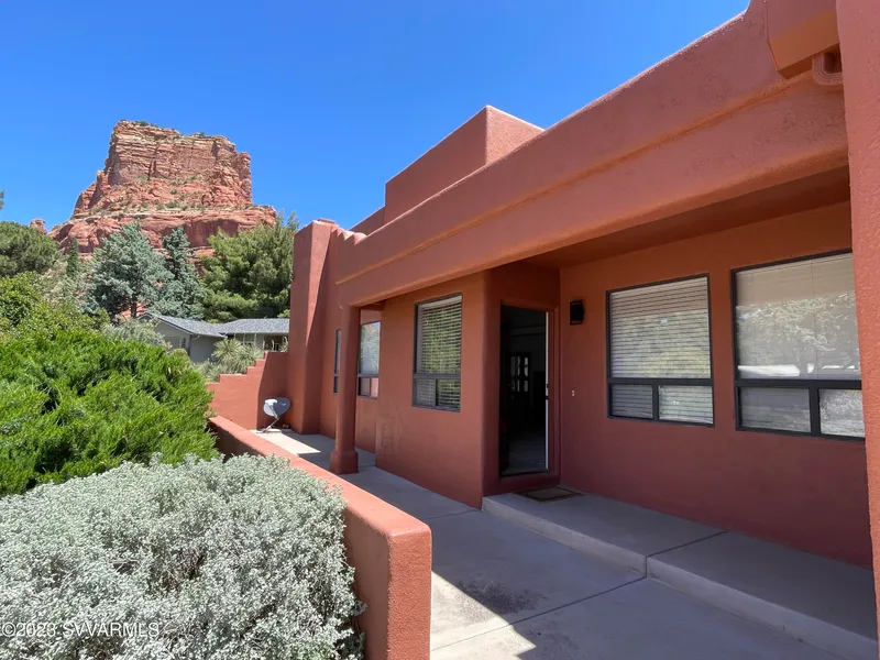 This appealing 3-bedroom, 2-bathroom southwest architecture home is found in the Fairway Oaks development of Sedona. Enjoy inspiring views of Castle Rock formation from concrete front patio as well as the living room. You will enjoy the spaciousness of the open concept layout. Sunlight thru the double glaze windows & skylights provide light & warmth & maintain the home's connection to nature. Board gamers, book readers, and raconteurs will find picturesque warmth in the glow of a gas fireplace in the living room with high ceiling. The sunlit kitchen offers practical functionality in efficient layout. There is also a breakfast bar by the dining area. The tranquil main-floor master bedroom includes a walk-in closet and a linen closet. The other two bedrooms, conveniently accessible from the main floor, are ready for your decorative expertise. After your local excursions, you'll return to t...