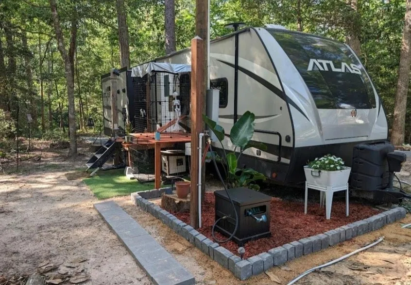 Cleared land for sale. Property has water and electricity. sewage holding tank. Partially fenced in. Prefect for weekend getaways & RV parking. (RV not included)