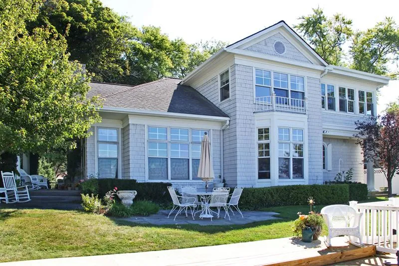 With a 180 degree view of one of the world's largest fresh water lakes, a deep sandy beach, and water no more than five feet deep for 100' or more, a place to call home doesn't come any better than this! This beachfront treasure is located two miles north of the resort town of South Haven, and just two hours from Chicago. When you're not on the water, or the wide sandy beach, relax on one of the decks, the patio or the covered porch. Enjoy a front row seat to daily spectacular sunsets from any one of them. Inside living is easy in this sophisticated French country inspired home. The open floor plan of the main floor is wonderful for families and entertaining, with hewn timber beams gracing the main areas. The Master Suite overlooks Big Blue on the upper level, which also includes a second BR and full BA. And the lower level has two large rooms that the seller uses as BRs (w/o egress windows) and plenty of living space. This awesome beach house also features geothermal heat, for energy efficiency and lower utility bills. For buyers in search of heaven on earth for a full-time or second residence, this waterfront home must be seen!