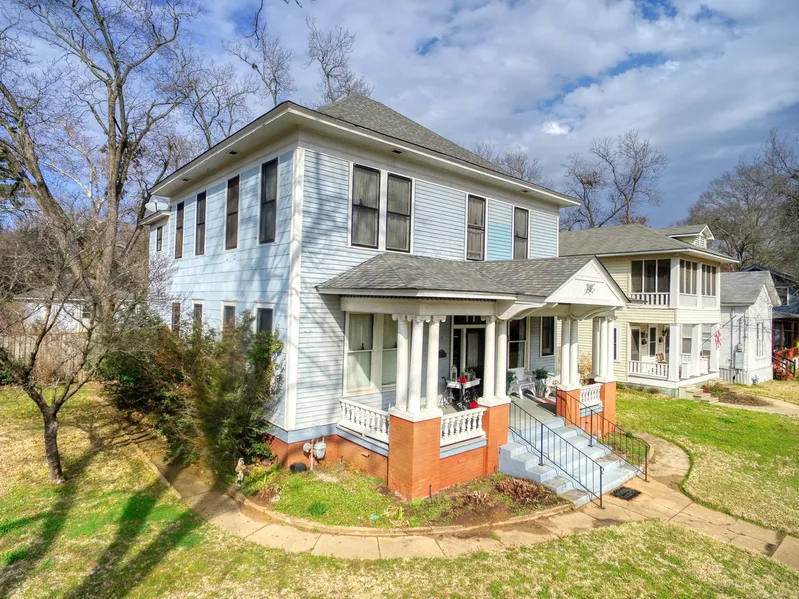 Here you will find towering ceilings, original woodwork, wood flooring, crown molding & elegant pocket doors. Downstairs you will find a comfortable living space, kitchen dining room & a flex space w/full bath & closet (currently being used as an office, could be 5th bedroom). Kitchen has some updates, plenty of cabinets & charming butler’s pantry. Upstairs you will find 4 bedrooms and 3 full baths along with a common room that could be a game room, tv room etc. Home has an abundance of closets for storage. Other amenities include detached garage, fenced yard & a charming front porch will make you want to sit and stay a while.