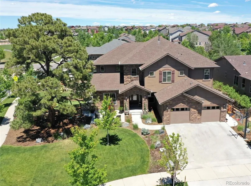 Located in the highly sought after Tallyn's Reach South neighborhood, where natural Ponderosa Pine treed streets greet you, this semi-custom Toll Brothers Bella model awaits. The largest protected Ponderosa pine tree in the area resides in the front yard of the expansive professionally landscaped corner lot. Outdooring living at its finest, enjoy two outdoor fire places, a putting green, front and rear patios, fenced in yard, pergola, concrete walkways, hot tub, and luscious plant material surround the entire yard. The impressive two story entryway with sweeping curved front staircase welcome you instantly. Open concept formal living and dining/entertainment space off the front lead you to the bar/butlers pantry with wine fridge and massive walk-in pantry. The gourmet kitchen is a chef's dream featuring expansive island, custom built-in GE monogram refrigerator, double oven, gas stove, new GE dishwasher, chef sink, exceptional storage space, two-tone espresso and white Merrilat cabinets. All four bedrooms located on the upper level with a charming custom library loft area in the center. A primary suite unlike any other, nearly 1000 sqft of brightly lit bedroom, 5 piece spa-like bathroom, massive custom closet, stone adorned fireplace, and flex room living. Jack and Jill bathroom connecting two spacious bedrooms and the fourth spacious bedroom has an en-suite full bathroom. Owners entry. Two staircases. Fully finished basement featuring under stairs fort, media area, butler bar, putting green, full bathroom, plumbed for wet bar, and a concrete finished crawl space for massive storage use. The thoughtfully added High-end and custom finishes throughout amongst Mountain Views from upper level bedrooms and South facing driveway make this home Colorado perfection. Award winning Cherry Creek School District. 5 minutes to Southlands mall dining and entertainment. 25 minutes to DIA 6 minutes to E-470New designer carpet (2021) New dishwasher (2021)HVAC maintained yearly