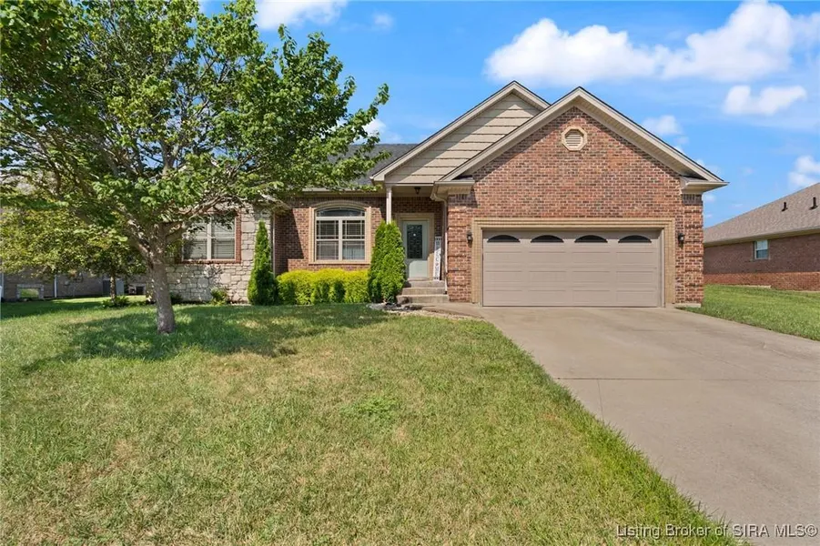 MOTIVATED SELLER! Sellers are offering $3,000 toward closing costs with an accepted offer within the next 30 days. Located in the sought-after Heritage Springs subdivision in Greenville, this 4 bedroom, 3 bath brick and stone home offers space, comfort, and custom details throughout. A brand-new roof provides peace of mind. Inside you'll find 10-foot ceilings, crown molding, engineered hardwood floors, and custom blinds and window treatments. The spacious eat-in kitchen features an island and flows into the open living area, making it perfect for gatherings. The split-bedroom floor plan includes a primary suite with a tray ceiling, custom shelving in the walk-in closet, and a bathroom with separate vanities. Downstairs, the finished daylight basement includes a fourth bedroom (or office), a full bathroom with a custom tiled shower, and a large 23x19 flex room with closets. Additional basement features include tile and carpet flooring, an electric fireplace, a custom bar/cabinet area, and built-in shelving for storage. Outside, enjoy a fenced-in yard, raised garden beds, and a playhouse that stays with the home. A Ring doorbell and window/door sensors are also included. Heritage Springs offers fantastic neighborhood amenities, including nature trails, a park, playground, pickleball, and basketball courts, perfect for active living and family fun. With thoughtful upgrades and a welcoming community, this home truly has it all. Sq ft & rm sz approx.