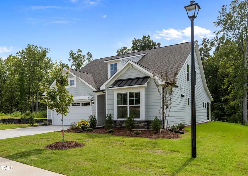 Welcome to Enclave at Hidden Lake, a premier 55+ gated community offering incredible amenities—including a pool, fitness center, lake, and fishing dock. With yard maintenance included, you'll enjoy a true lock-and-leave lifestyle. (Gate closes at 7pm) Built in 2025, this better-than-new home still has that new-home feel and features an open-concept floor plan with 3 bedrooms, Office, 3 baths, and 2,534 sq ft. The .28-acre homesite backs to a wooded tree line for privacy, and the 2-car garage is painted and insulated. Step inside to find stunning LVP flooring, 5-panel Craftsman-style doors with brushed nickel levers, and a built-in drop zone off the garage entry. The home office makes a statement with French doors, coffered ceilings, and wainscoting. The kitchen impresses with crown molding, upgraded painted cabinets with soft-close drawers, quartz countertops, recessed lighting, a corner pantry, and stainless steel appliances—including a gas range with convection oven, microwave, and dishwasher. The kitchen opens to the dining area and spacious family room with an eye-catching stone-surround fireplace. A covered patio off the dining area overlooks the wooded backyard. The main-floor owner's suite boasts plush carpet, a tray ceiling with crown molding, and a modern ceiling fan. The spa-like bath features dual quartz vanities, painted cabinetry, brushed nickel fixtures, an oversized walk-in shower with tile surround, and a huge walk-in closet with direct access to the laundry room. A guest bedroom and full bath are also conveniently located on the first floor. Upstairs, you'll find an additional bedroom with a Jack & Jill bath, plus a large bonus room with LVP flooring and recessed lighting—perfect for hobbies, movie nights, or hosting guests. Plus convenient walk-in storage. Don't miss this rare opportunity to enjoy resort-style living in Enclave at Hidden Lake—schedule your private showing today!