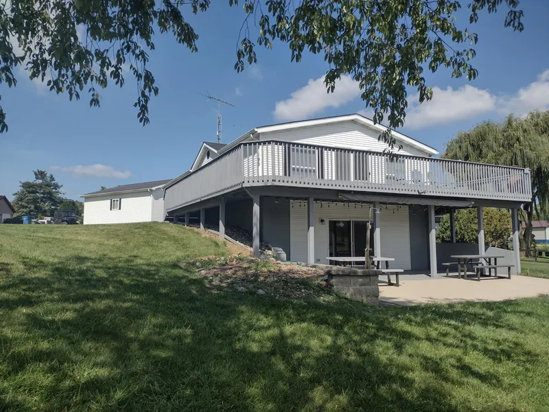 Lake Diane Waterfront home is ready for you! Can be used as a cottage or year round. Located on a cul-de-sac with Eastern view of lake & wooded peninsula from deck or patio. Step in from the wrap around deck & tour the end elevated ranch that is tastefully decorated to catch the eye of the fun loving. Sleeps approximately 22 with over 3000 sq ft that contains two kitchens, 3 baths & bedrooms on each level. Main level kitchen has loads of cabinets & a breakfast bar adjoining dining area. Lower kitchen has a wrap around dining bar, gas log stove & family room in open floor plan. Plenty of storage and a large garage. Lower Patio has a Sun Setter Awning & out door shower for washing off from the Sandy Beach! All appliances & 30 ft of dock included. 400 acre spring fed all sports Lake,fuel your boat on the water at the carry out. Great Fishing!